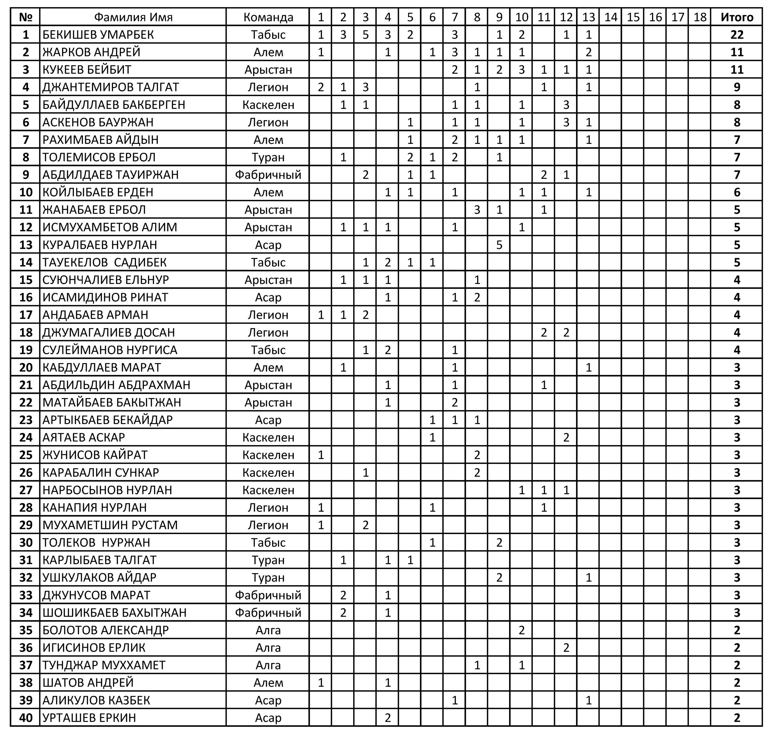 Бомбардиры после 13 тура