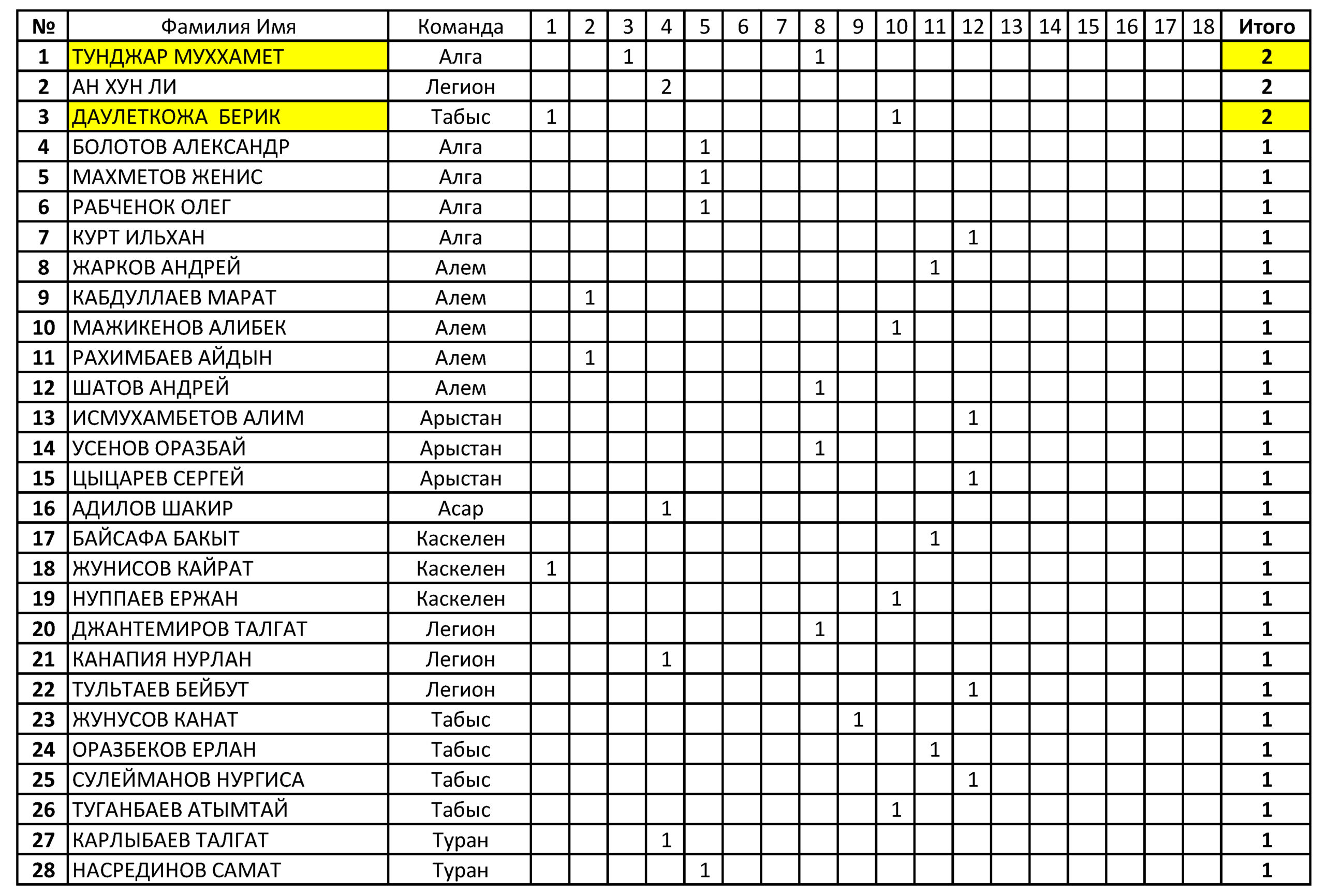 Результаты и турнирная таблица